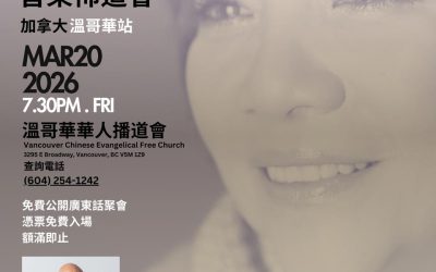課程對象: 粵語堂所有樂意參與事奉的會眾 地點: 溫哥華華人播道會 及 列治文華人播道會 報名方式 : 在取得所屬團契/小組負責牧者的推薦後,可透過二維碼報名。曾報讀上一屆課程者,可沿用上一次的推薦。若未有參與任何團契/小組,請聯絡任何一位粵語堂牧者商討推薦事宜 報名截... Read More →